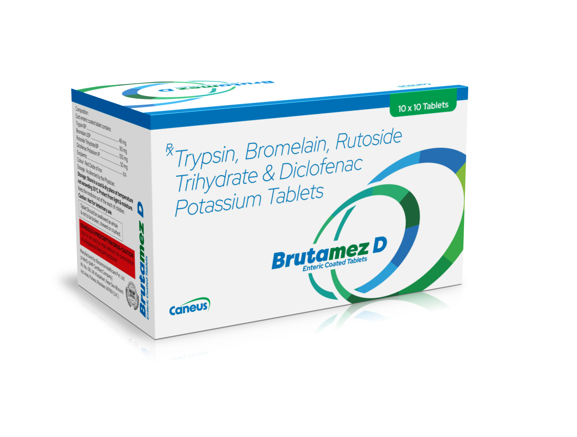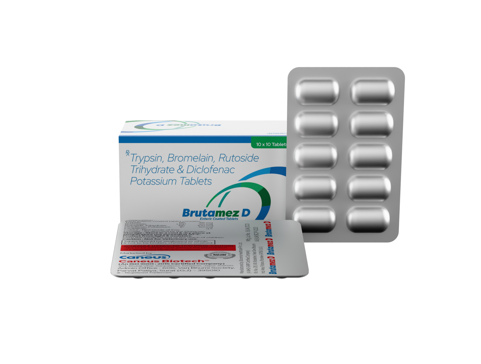 Brutamez D tablet, comprising Trypsin 48 mg, Bromelain 90 mg, Rutoside trihydrate 100 mg, and Diclofenac 50 mg tabs, stands out as a reliable solution for pain relief. This unique blend, found in Brutamez D tablets, offers a comprehensive approach to tackling pain and inflammation. By leveraging the synergistic effects of Trypsin, derived from natural enzymes, Bromelain, extracted from pineapple, Rutoside trihydrate, a potent bioflavonoid, and Diclofenac, a trusted NSAID, this formulation effectively targets various sources of discomfort.