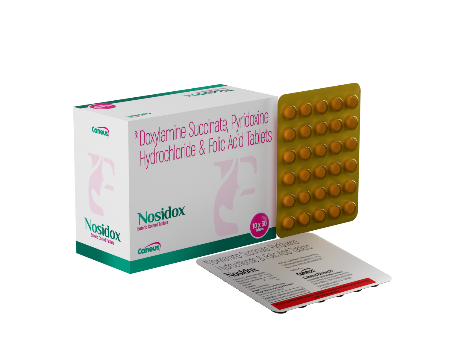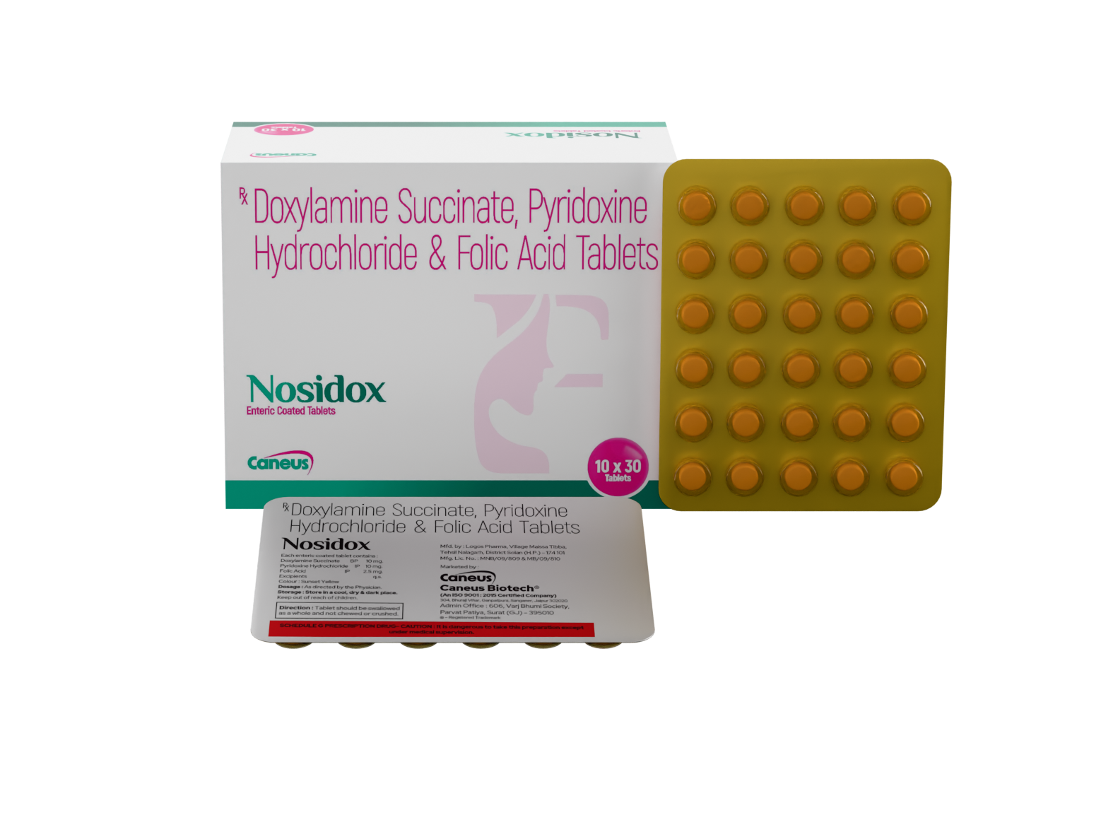 Nosidox tablets offer a reliable solution for managing nausea and vomiting associated with pregnancy. This combination medication, including doxylamine succinate, pyridoxine hydrochloride, and folic acid, is specifically formulated to address these common symptoms, providing effective relief to expectant mothers.